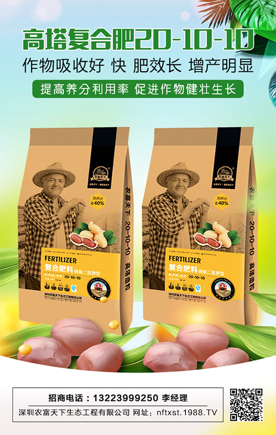 深圳農(nóng)富天下生態(tài)工程有限公司的這款【花生專用復(fù)合肥料20-10-10】采用約旦進(jìn)口鉀肥和國(guó)家一等全溶性磷原料生產(chǎn),全水溶、,具有松土、保水功能,作物吸收好,快,肥效長(zhǎng),增產(chǎn)明顯。產(chǎn)品含大量元素氮、磷、鉀、中微量元素鈣、鎂、硫、鋅等融合在一起,供給作物全面、均衡、的養(yǎng)分、顯著提高養(yǎng)分利用率,促進(jìn)作物健壯生長(zhǎng),提高作物的產(chǎn)量和品質(zhì)。
