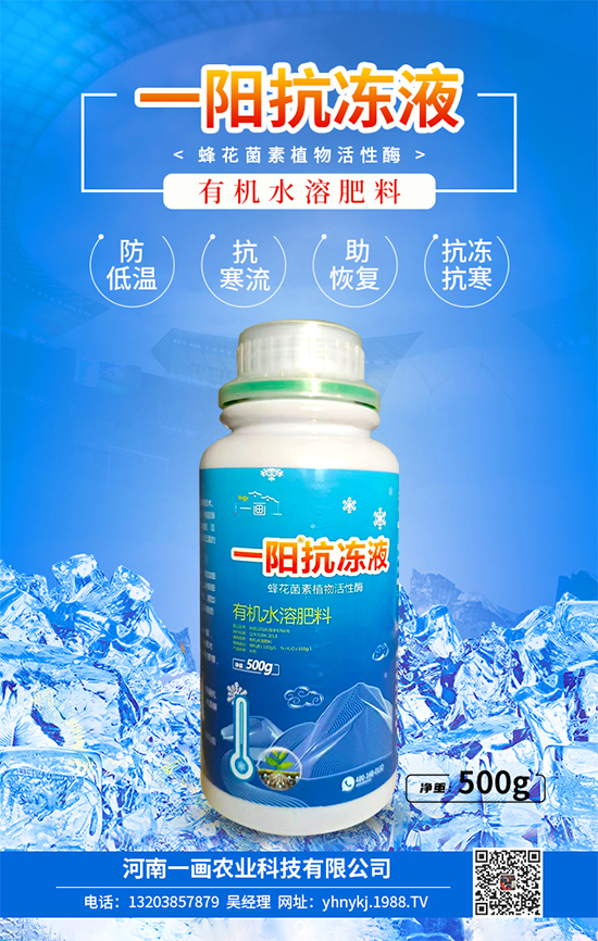 作物防凍施肥建議選擇河南一畫(huà)農(nóng)業(yè)科技有限公司【有機(jī)水溶肥料-一陽(yáng)抗凍液】本品是經(jīng)微生物發(fā)酵濃縮而成的有機(jī)水溶肥料,大部分營(yíng)養(yǎng)成分為菌體代謝產(chǎn)物,能有效提高作物品質(zhì),增加作物產(chǎn)量,是發(fā)展無(wú)公害綠色農(nóng)業(yè)的理想產(chǎn)品。