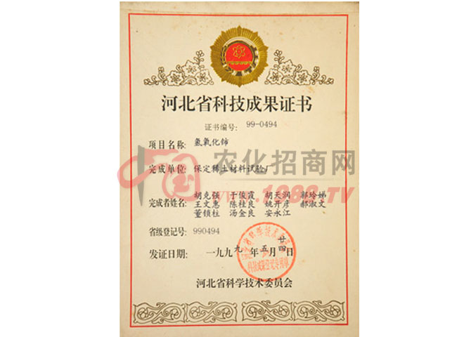 證書名稱:河北省科技成果證書 發(fā)證機(jī)構(gòu):河北省科學(xué)技術(shù)委員會