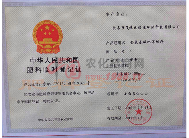• 肥料登記證肥料登記證